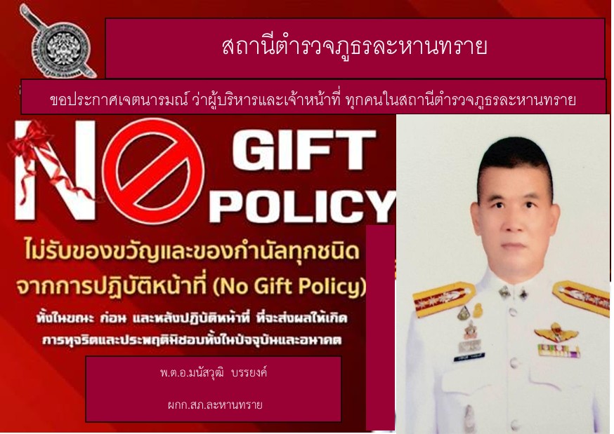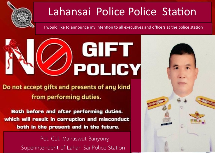 - ประกาศสำนักงานยุทธศาสตร์ตำรวจเรื่องเจตนารมณ์ที่จะไม่รับของขวัญหรือของกำนัลทุกชนิดจากการปฏิบัติหน้าที่