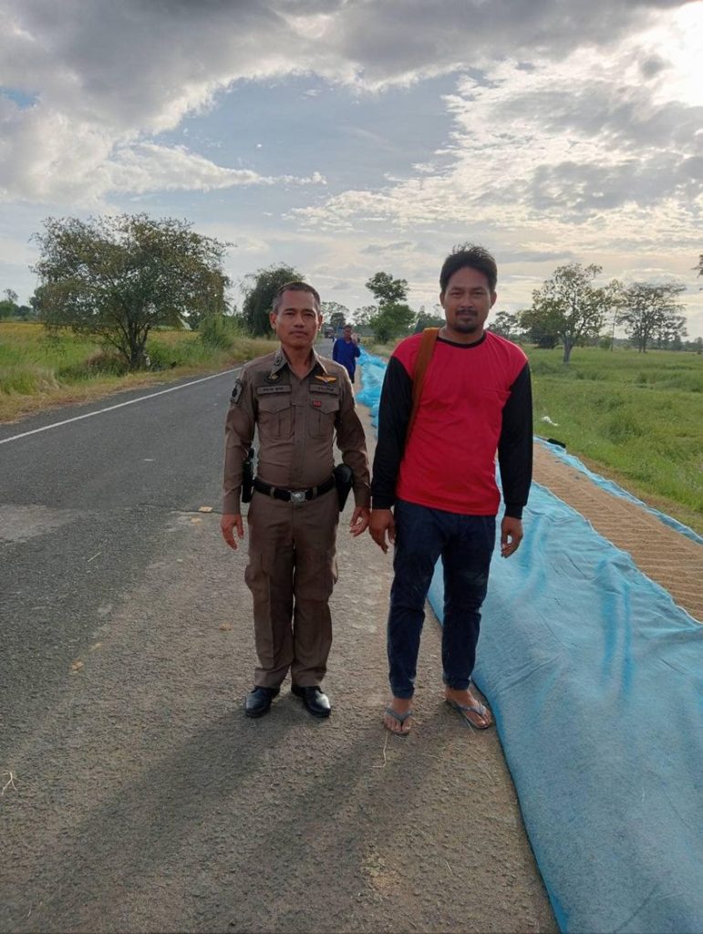 สายตรวจตำบลโคกว่านออกตรวจในเขตฯ เพื่อประชาสัมพันธ์แนะนำ ให้เกษตรกรชาวนา ที่นำข้าวเปลือกมาตากบริเวณริมถนน พื้นที่ในทางสัญจร โดยให้จัดทำสัญลักษณ์ เพื่อป้องกันและลดอุบัติเหตุทางถนน ไม่กีดขวางการจราจร รวมทั้งให้มีคนเฝ้า ป้องกันเหตุลักทรัพย์ผลผลิตข้าวเปลือกในฤดูเก็บเกี่ยว
