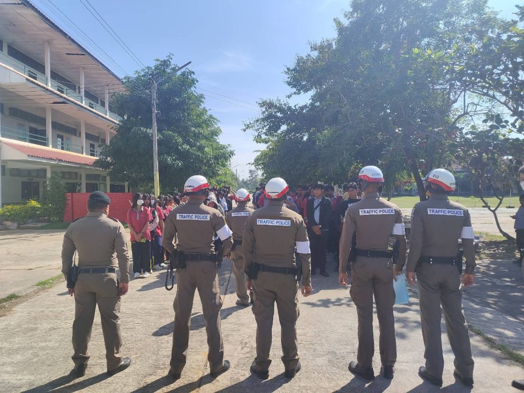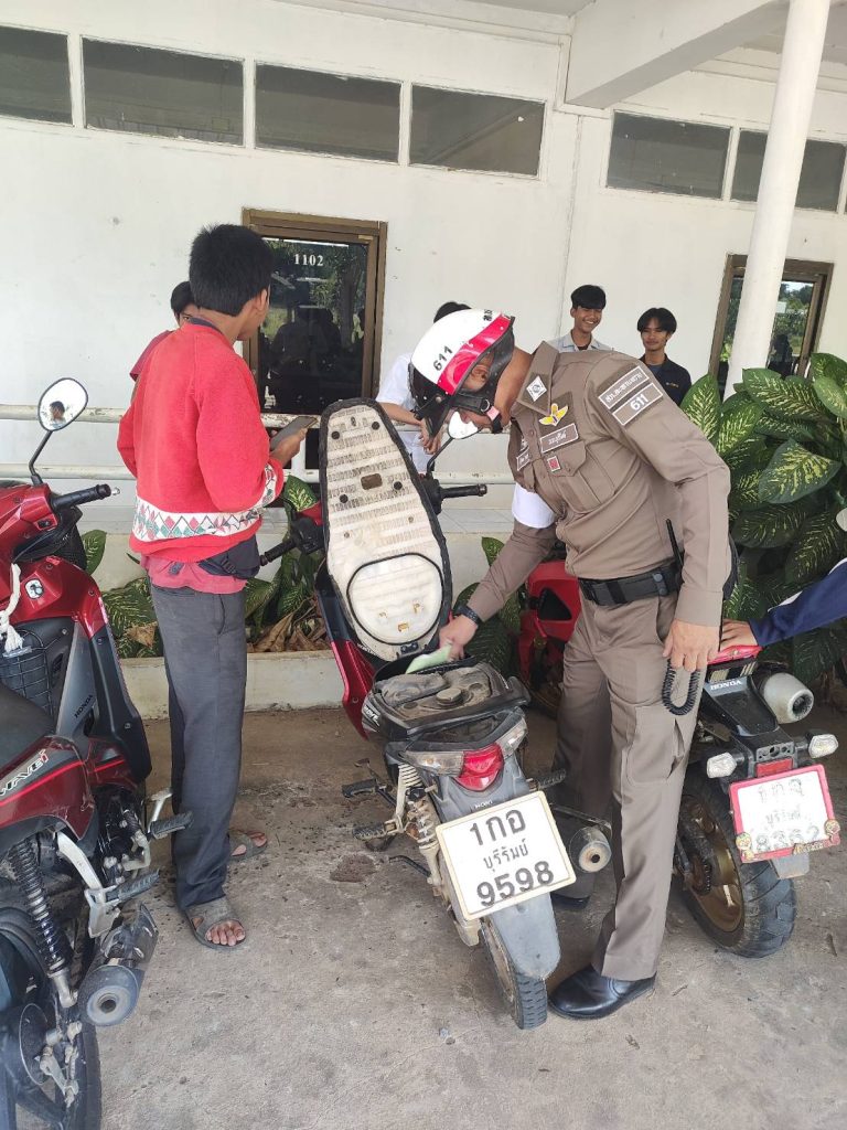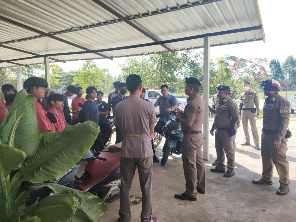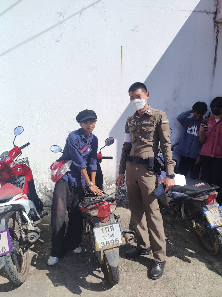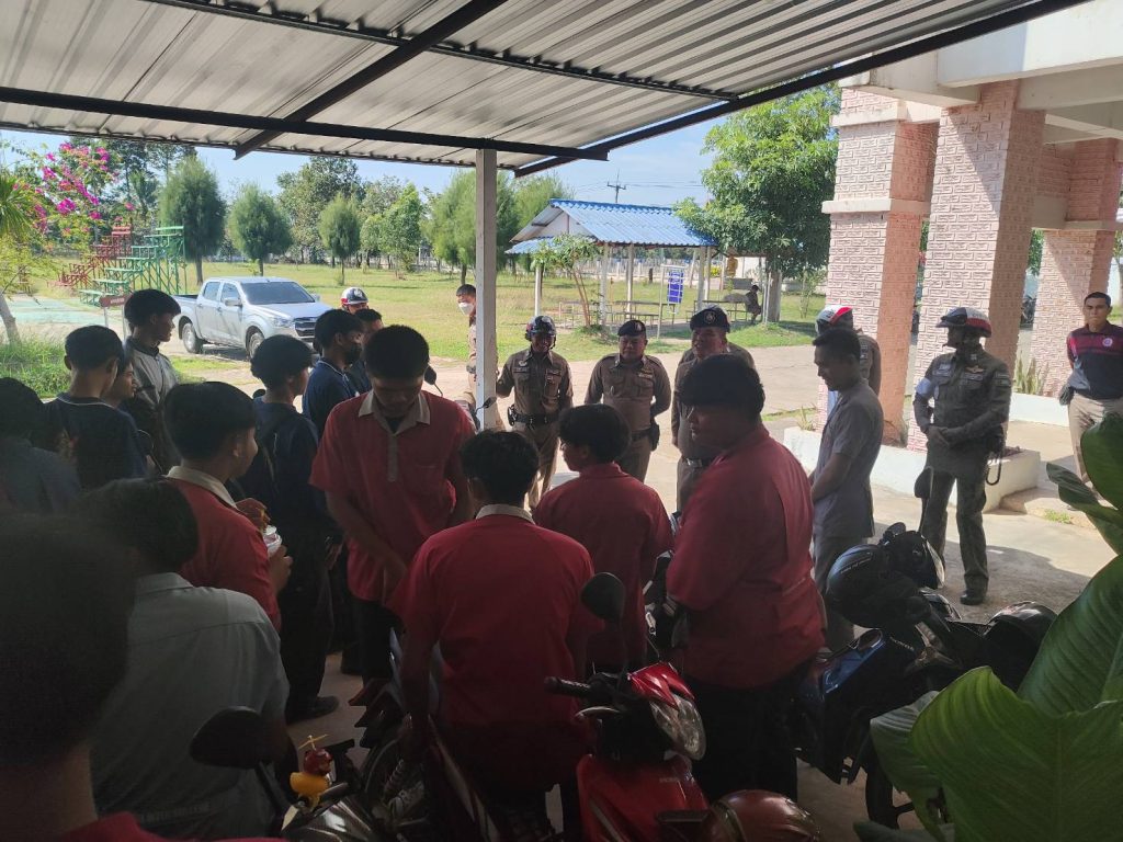 ให้ความรู้เกี่ยวกับความผิดฐานการเเข่งรถในทางและความผิดอื่นที่เกี่ยวข้อง ได้ตรวจสอบรถจักรยานยนต์บริเวณจุดจอดรถภายวิทยาลัย ไม่พบรถที่มีลักษณะไม่ถูกต้องตามกฎหมาย