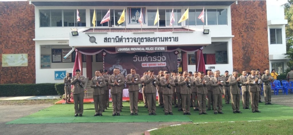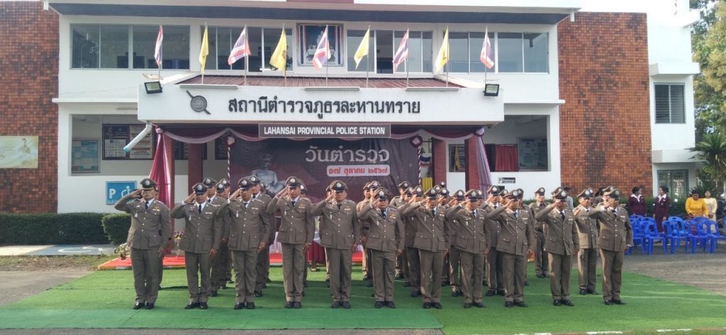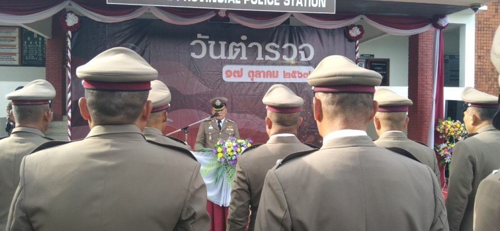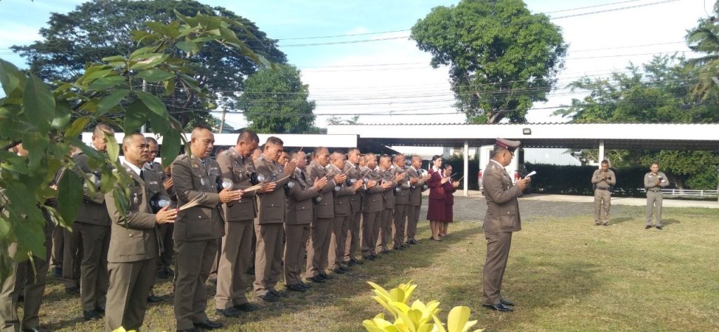 (-) เวลา 08.00 น. เข้าแถวเคารพธงชาติ กล่าวคำปฏิญาณ กล่าวอุดมคติตำรวจ และร้องเพลงมาร์ชตำรวจไทย