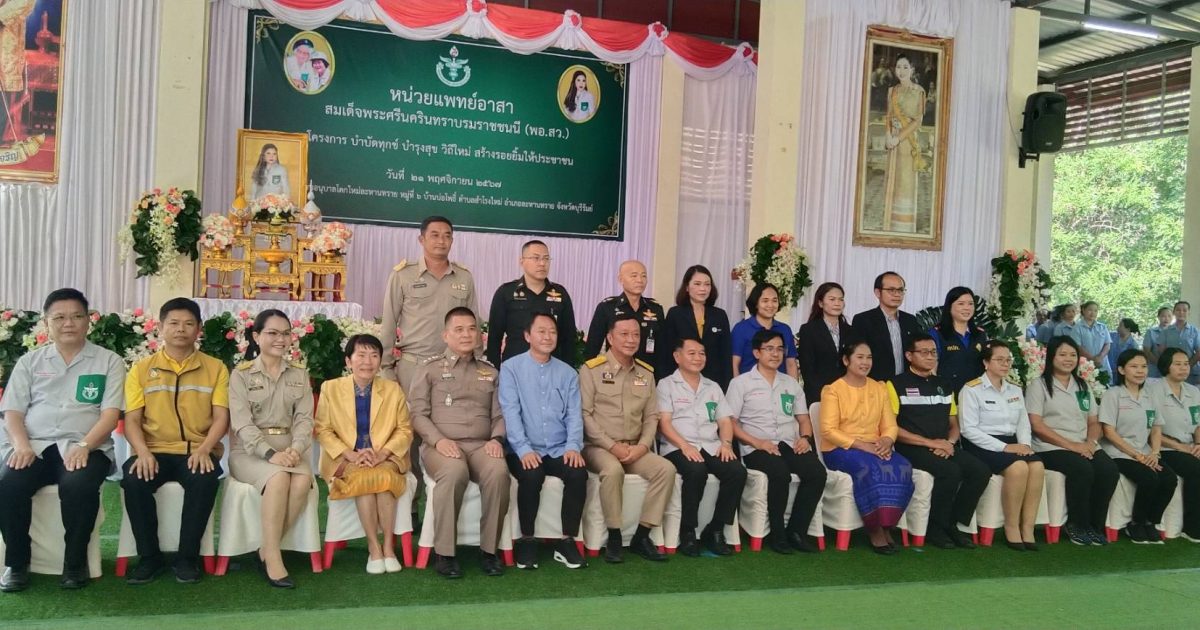 21 พ.ย.67 เวลา 10.00 น. พ.ต.อ.มนัสวุฒิ บรรยงค์ ผกก.สภ.ละหานทราย พร้อมหัวหน้าส่วนราชการประจำอำเภอร่วมต้อนรับหน่วยแพทย์อาสาสมเด็จพระศรีนครินทราบรมราชชนนี (พอ. สว.)และโครงการบำบัดทุกข์ บำรุงสุข วิถีใหม่ สร้างรอยยิ้มให้ประชาชน ณ โรงเรียนอนุบาลโคกใหม่ หมู่ที่ 6 บ้านบ่อโพธิ์ ตำบล สำโรงใหม่ อำเภอละหานทราย จังหวัดบุรีรัมย์