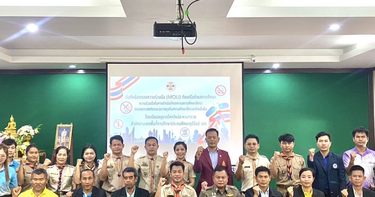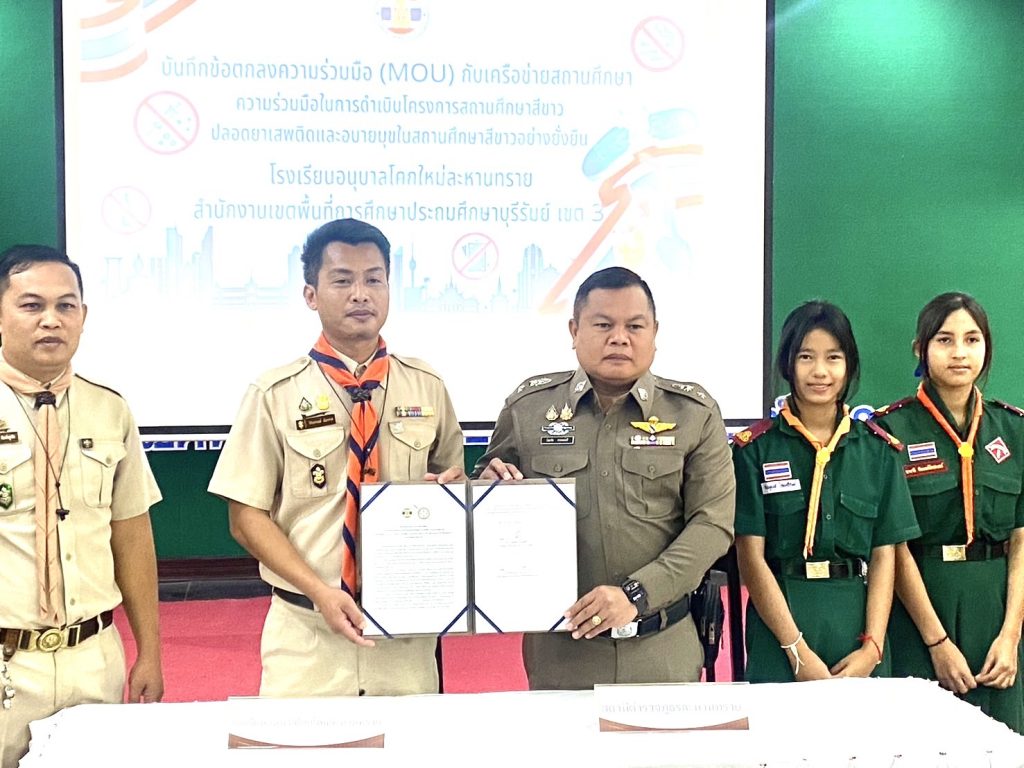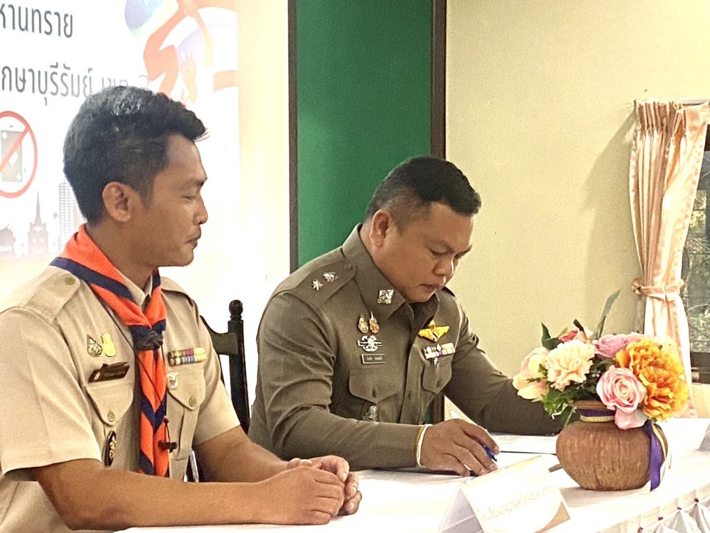 8 มกราคม พ.ศ. 2568 เวลา09.00 น. พ.ต.ท.มิตรชัย ประสงค์ศรี สวป.สภ. ละหานทรายร่วมลงนามบันทึกข้อตกลง(MOU)สถานศึกษาสีขาวปลอดยาเสพติดและอบายมุขประจำปีการศึกษา 2567ณ.โรงเรียนอนุบาลโคกใหม่ละหานทราย