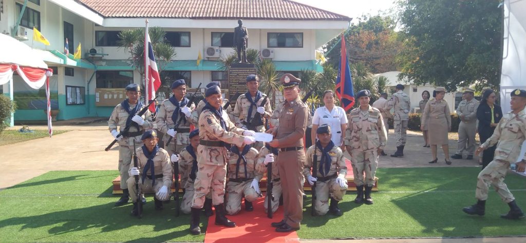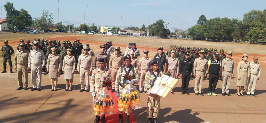 “ปลดเป้ วางปืน คืนหน้าที่” ให้กับ ๓. นายหมู่ใหญ่ประสิทธิ์ แสนรัมย์ ๒. นายหมู่ใหญ่อรัญ แก่นจัด แล และ