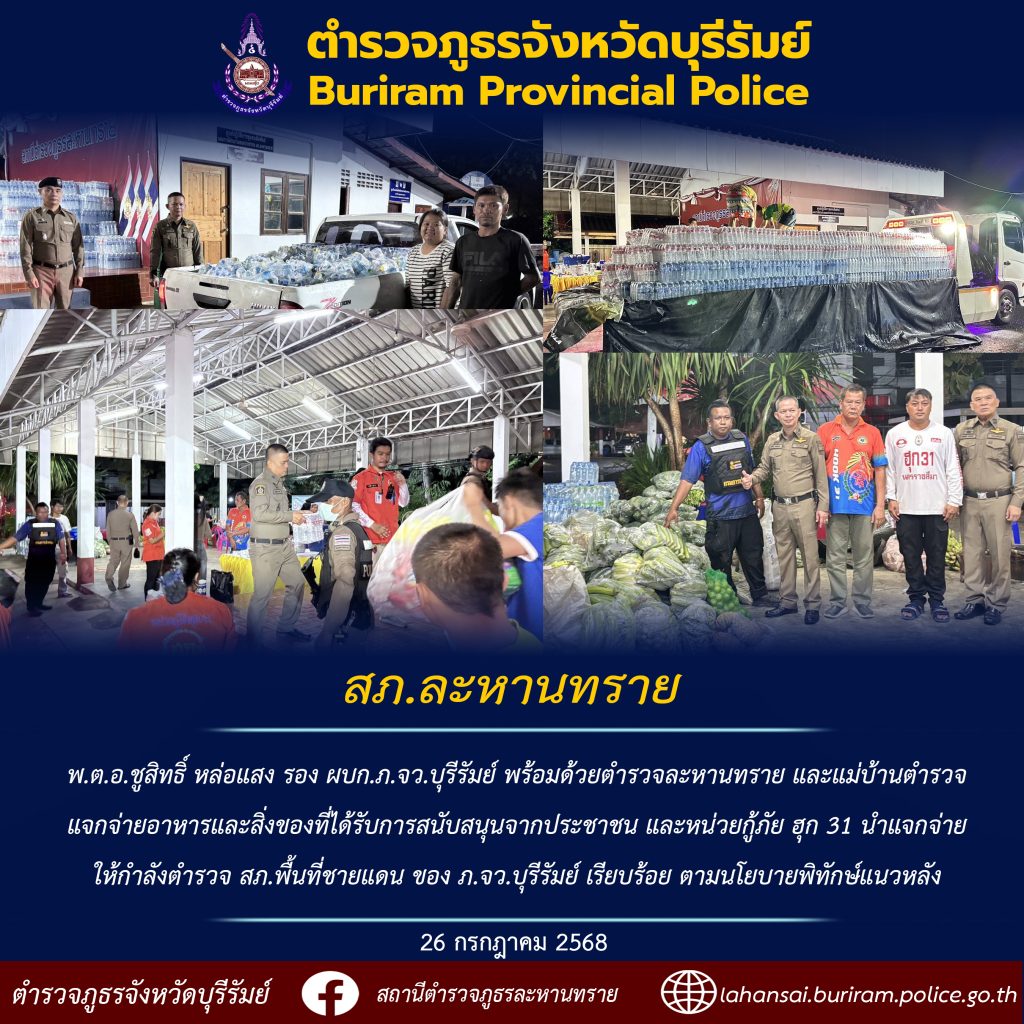 นำสิ่งของบริจาค สู่ สภ.ชายแดน 26 กรกฎาคม 2568 โดย admlahansai / ข่าวภารกิจผู้บังคับบัญชา FacebookFacebookXXLINELine