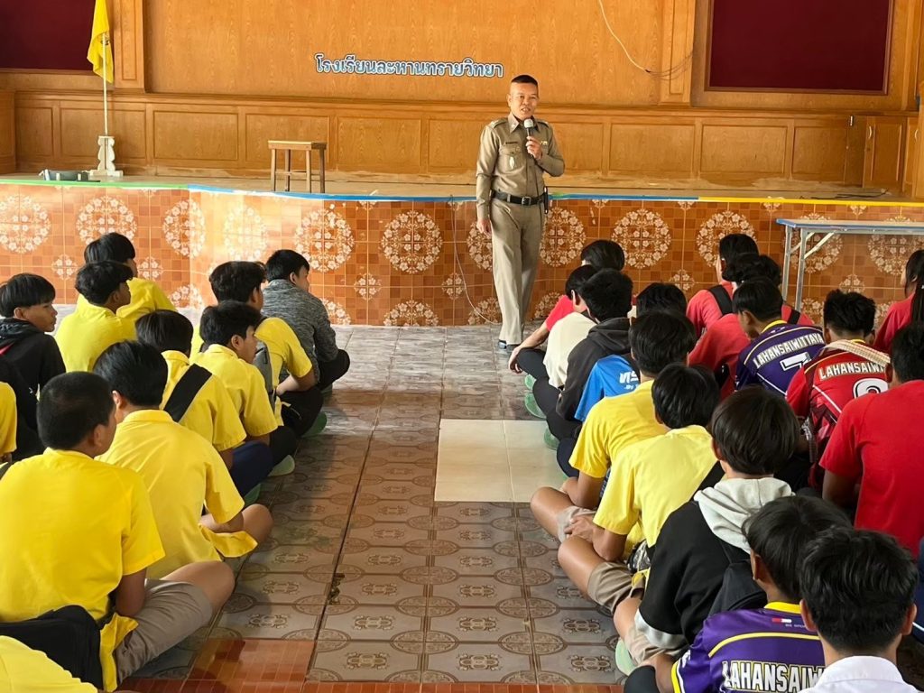 พ.ต.อ.มนัสวุฒิ บรรยงค์ ผกก.สภ.ละหานทราย มอบหมายให้ พ.ต.ต.วรพัทธ์ ชำนาญกลาง สวป.(ชส.) สภ.ละหานทราย และเจ้าหน้าที่ตำรวจชุดชุมชนและมวลชนสัมพันธ์ เป็นวิทยากรบรรยายให้ความรู้เกี่ยวกับการแก้ปัญหายาเสพติด และร่วมเดินรณรงค์การต่อต้านยาเสพติด ตามโครงการรณรงค์และแก้ไขปัญหายาเสพติด ( To be number one ) ระหว่างวันที่ 18 – 22 สิงหาคม 2568 ซึ่งดำเนินการโดยเทศบาลตำบลหนองแวง โดยได้ดำเนินการทั้งสิ้น จำนวน 13 หมู่บ้าน โดยได้รับความร่วมมือเป็นอย่างดีจากผู้เข้าร่วมอบรม